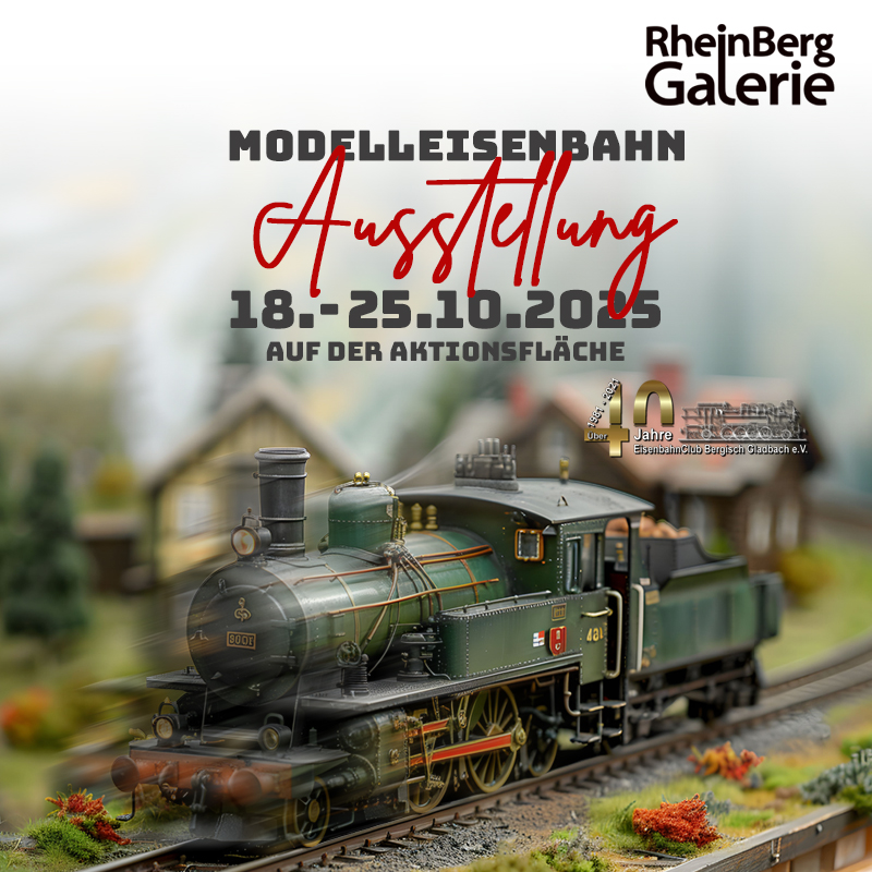 Eisenbahn-Fans aufgepasst! Vom 18.10. bis 25.10.2025 können Sie bei uns die Modelleisenbahn-Ausstellung des Eisenbahnclub Bergisch Gladbach e.V. bestaunen. Sie finden die Ausstellung auf der Aktionsfläche im Erdgeschoss. Wir freuen uns auf Sie!